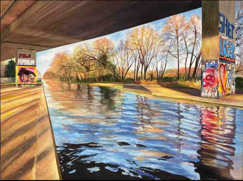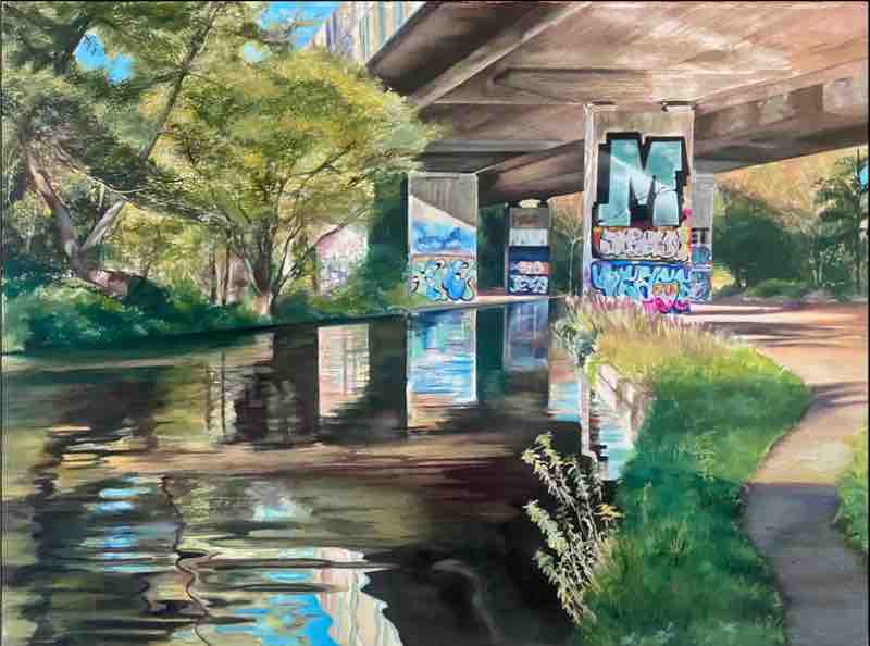 “Under M25” (watercolor on paper, 28 1/2 x 36 1/2 in.) by Tracy Love