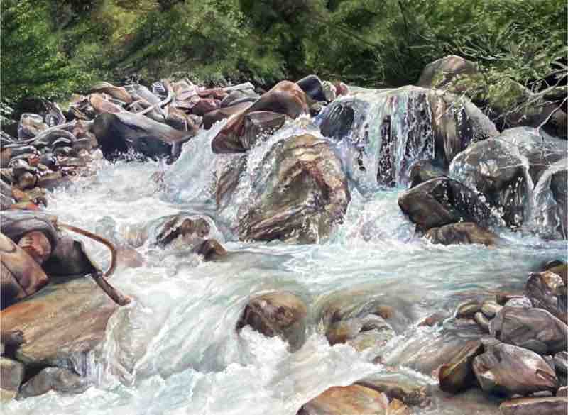 “Cascade” (watercolor on paper, 28 x 35 in.) by Tracy Love